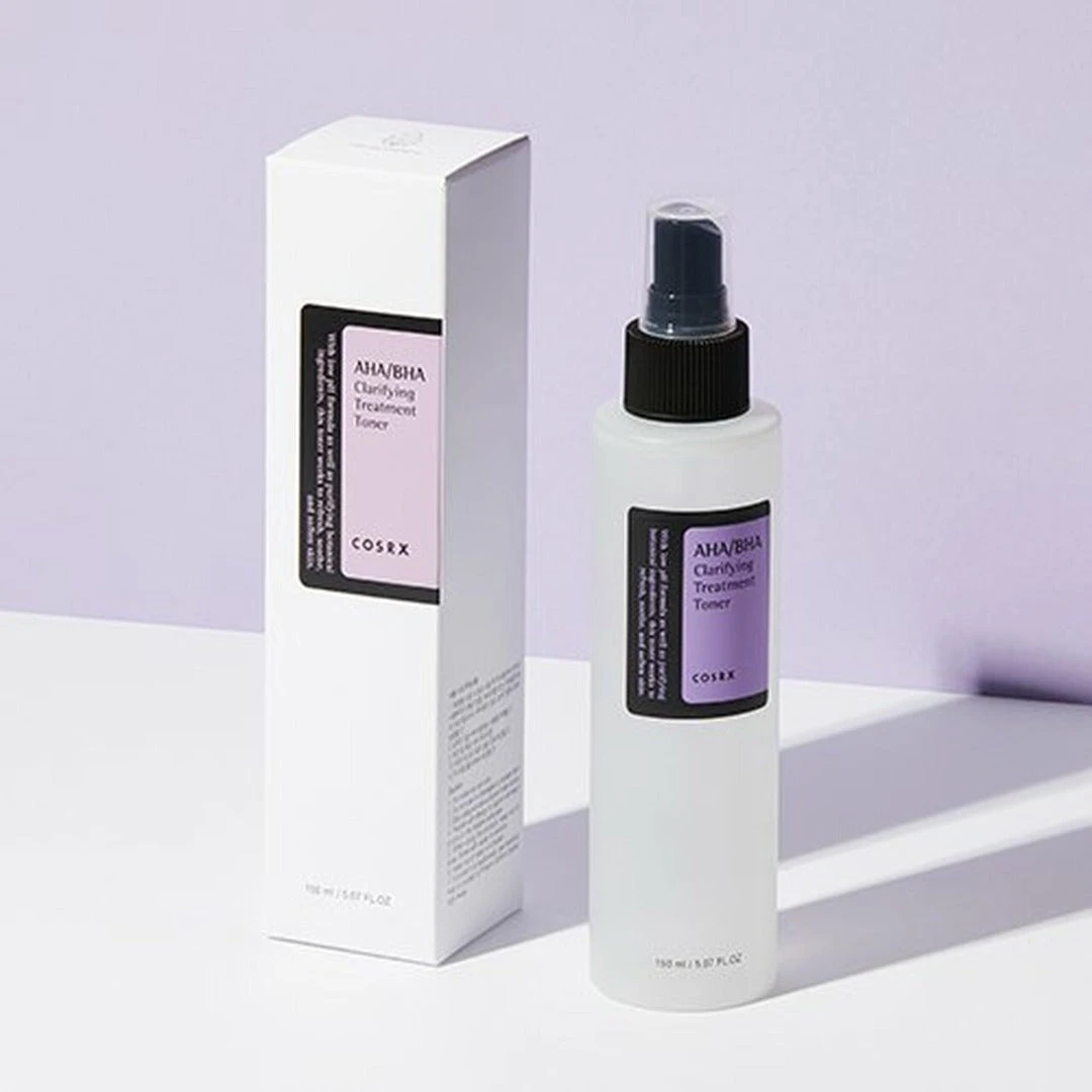 The COSRX AHA/BHA Clarifying Treatment Toner is formulated with natural ingredients: 10% of Apple Fruit Water (AHA) & 10% of Willow Bark Water (BHA) and a mineral water base. The formula gently exfoliates dull skin, removes dead skin cells, prevents the early development of whiteheads and blackheads, and helps the skin become clearer, brighter and smoother over time.