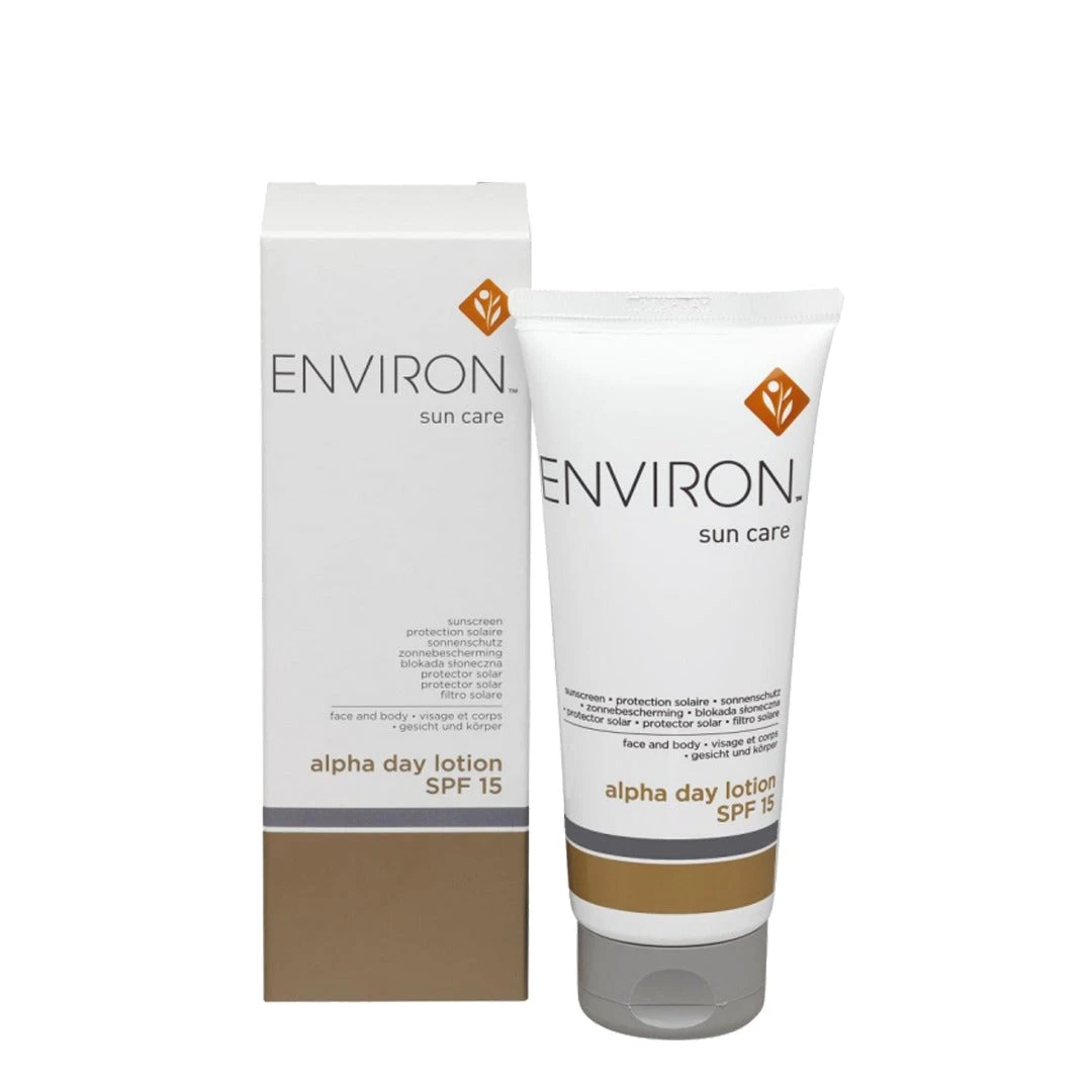 Environ Alpha Day Lotion contains medium levels of Alpha Hydroxy Acids (AHAs). It also contains sunscreens and reflectants that combine to give an SPF15 sun protection.