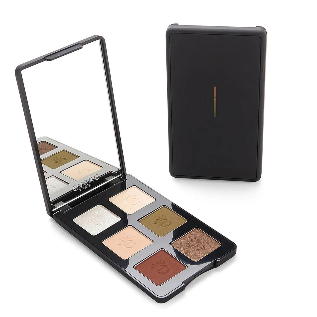 Designed for easy application and effortless on-the-go touch-ups, Eyeko Limitless Eyeshadow Palette 1 features six shadows contained in a chic compact that includes a mirror. Nude tones are complemented by a deeper brown, an olive green, and a khaki-hued gold. Blendable and buildable, the eyeshadows are crease-proof and long-lasting.