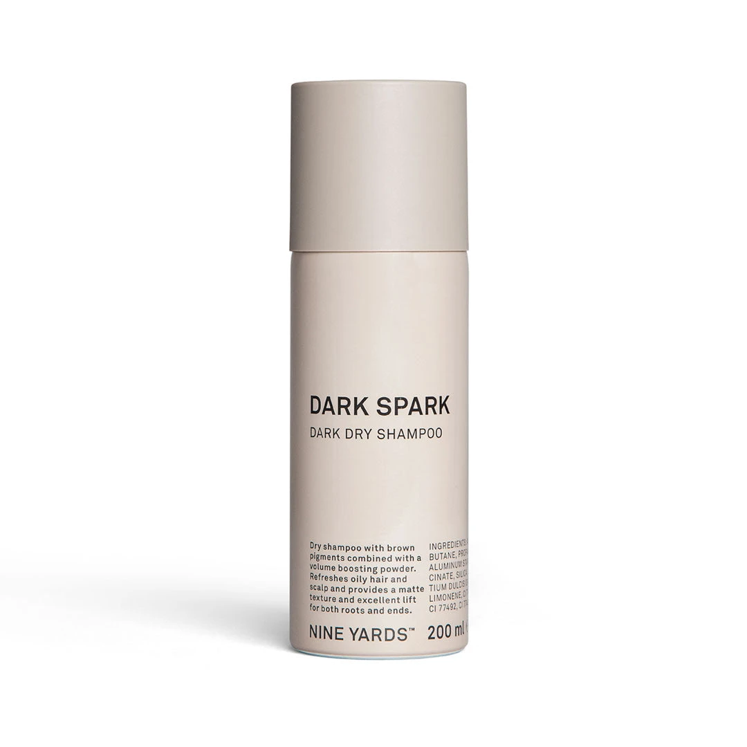 The Dark Spark Dry Shampoo by Nine Yards with dark pigments is designed to clean and add texture to darker hair tones. It provides incredible lift to fine hair for a thicker look and feel. Charged with Orange peel oil, this dry shampoo offers a natural fresh fragrance that lingers on your hair throughout the day. The natural starch is easy to rinse off, meaning that you’ll experience no product build-up or discomfort after using it.